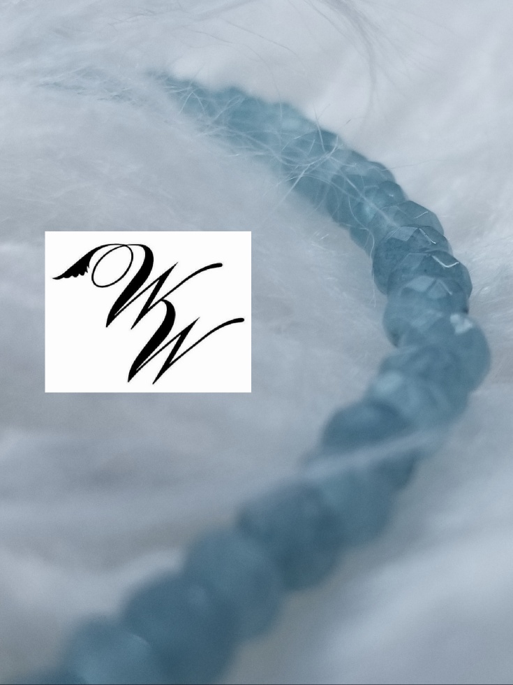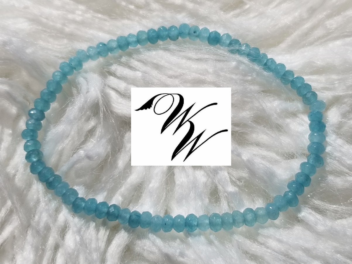 2-4 mm faceted Aquamarine gemstone bracelet. Elastic string, 7.5 inches, fits most wrists comfortably. Looks great by itself or layered with many.