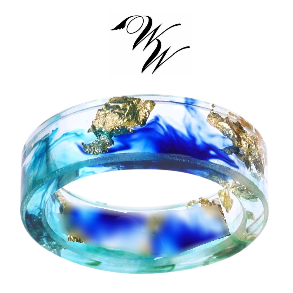 Resin material made from Norwegian oak trees. Coloring is from natural plant dyes from Norway. 24k Gold flakes suspended within the ring. 6mm wide.